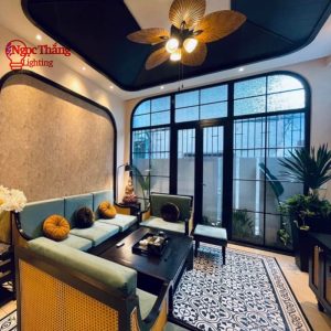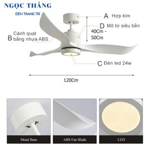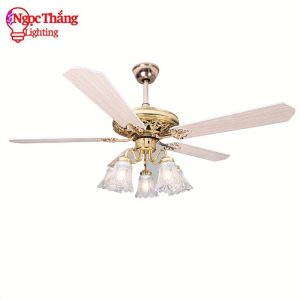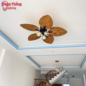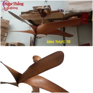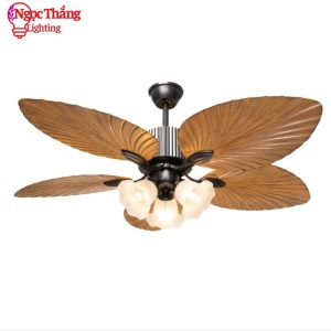 Quạt Trần Đèn Chùm 5 Cánh Hình Lá Cọ Trang Trí Phòng Khách Bảo Hành 5 Năm VF49 Ngọc Thắng Kèm Remote