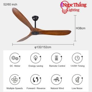 Quạt Trần 3 Cánh Gỗ Trang Trí Sảnh Phòng Khách Cao Cấp VF26 Ngọc Thắng (Kèm remote điều khiển từ xa)