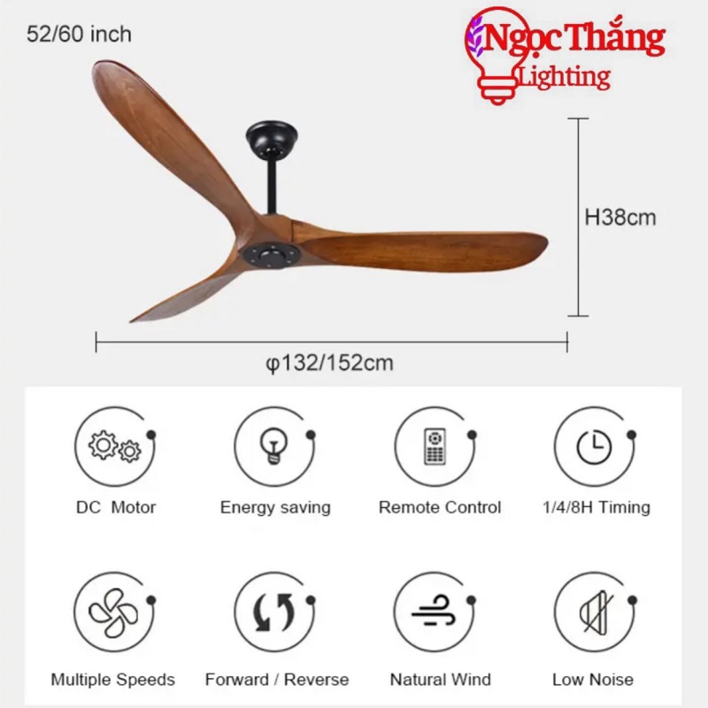Quạt Trần 3 Cánh Gỗ Trang Trí Sảnh Phòng Khách Cao Cấp VF26 Ngọc Thắng