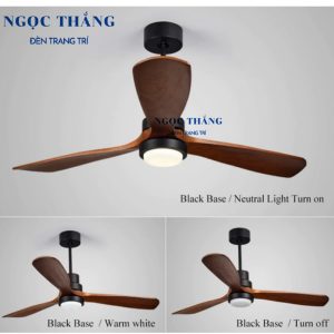 Quạt Trần Đèn Led 3 cánh gỗ tự nhiên sang trọng, hiện đại