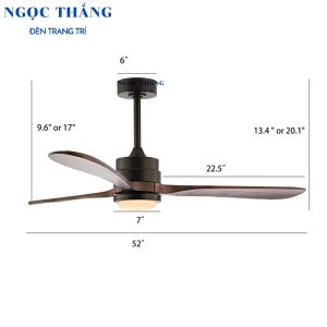 Quạt Trần Đèn Led 3 Cánh Gỗ Trang Trí Sảnh Phòng Khách Cao Cấp QT2010 Ngọc Thắng