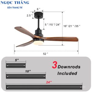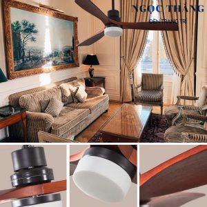 Quạt Trần Đèn Led 3 Cánh Gỗ Trang Trí Sảnh Phòng Khách Cao Cấp QT2010 Ngọc Thắng