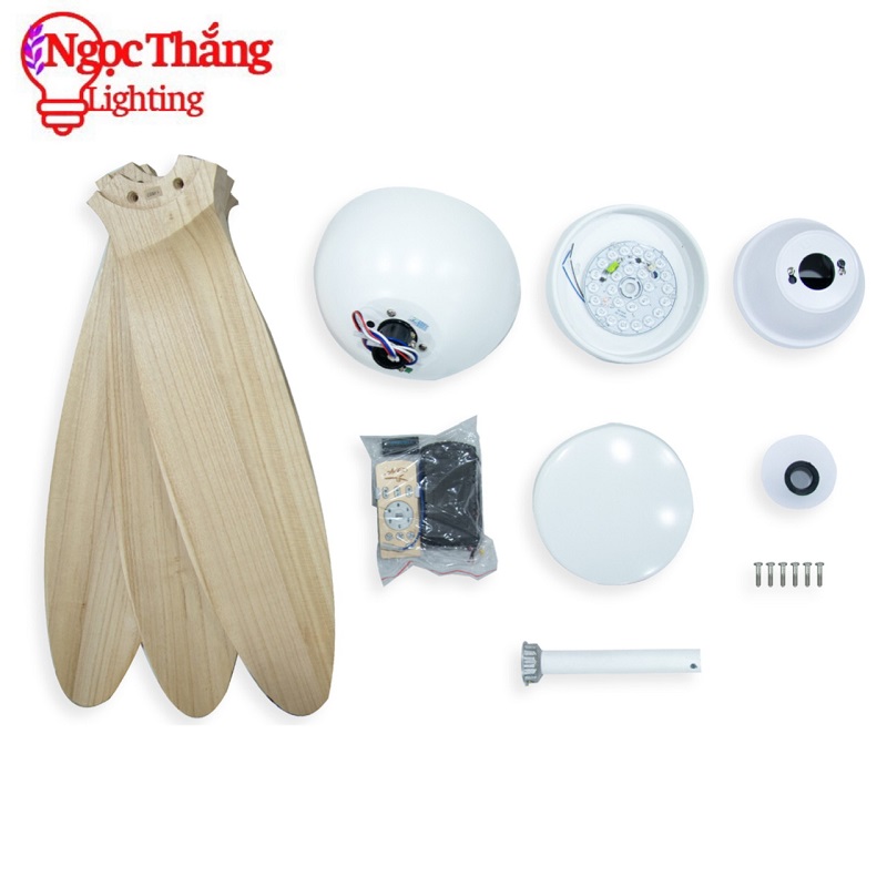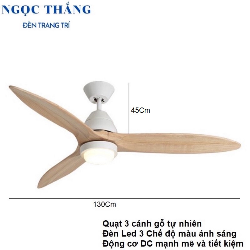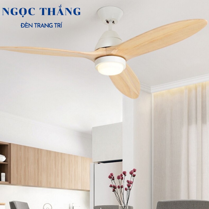 Quạt Trần Đèn Led 3 Cánh Gỗ Trang Trí Sảnh Phòng Khách Cao Cấp VF16 Ngọc Thắng (Tặng kèm remote điều khiển từ xa)