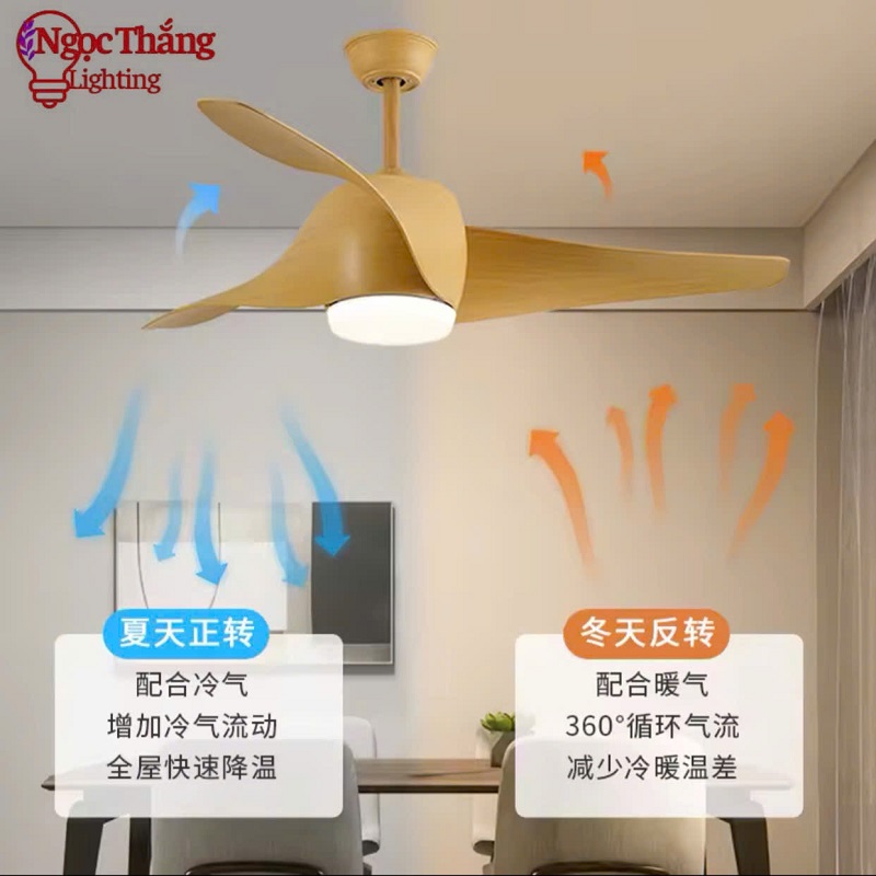 Quạt Trần Đèn Led 3 Cánh Nhựa ABS Trang Trí Sảnh Phòng Khách Cao Cấp VF427 Ngọc Thắng